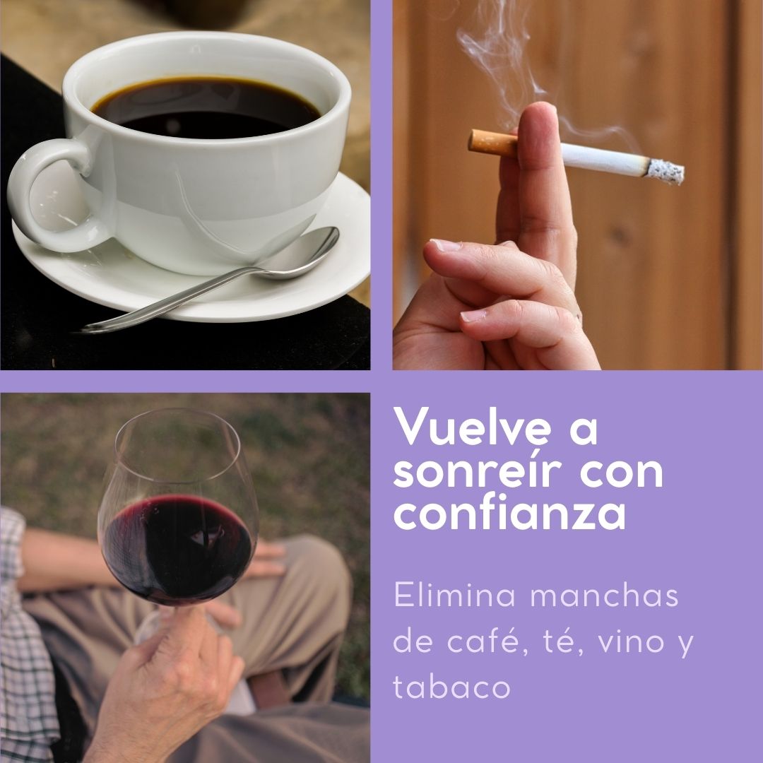 Elimina fácilmente manchas causadas por café, té, vino o tabaco. Solo aplica, enjuaga y deja que los resultados hablen por ti.